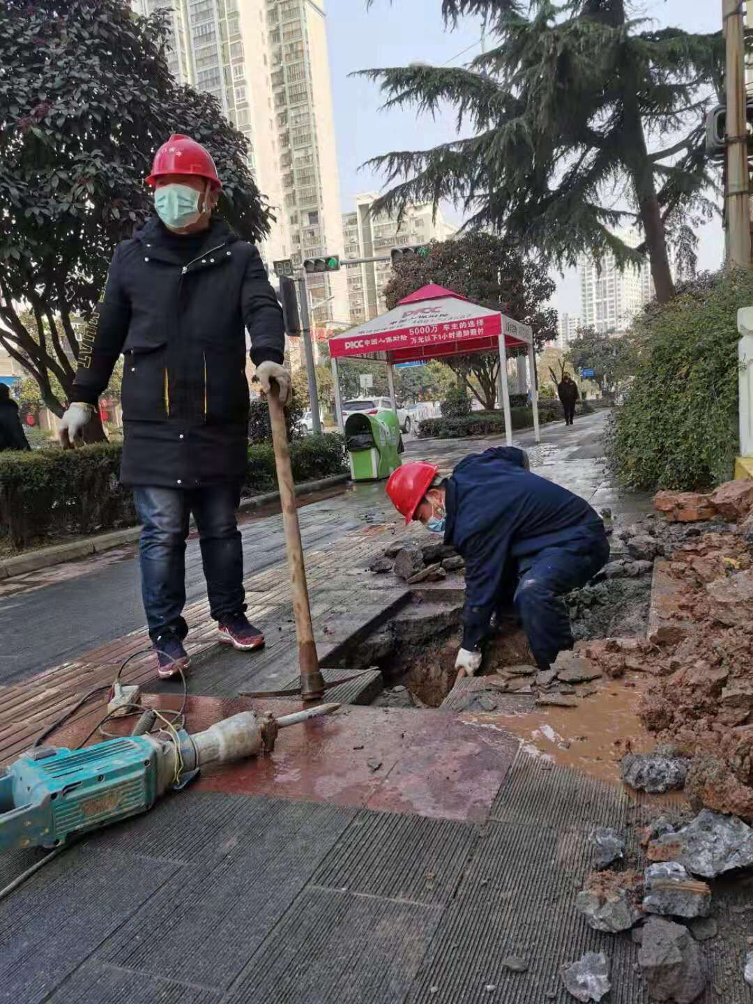 1月28日上午8時許,維修公司接到市民報警,塔影路與白云大道交匯處農(nóng)行家屬區(qū)門口DN100供水管道爆管,近100戶居民300多人用水告急,維修公司迅速啟動應(yīng)急搶修預(yù)案,供水設(shè)施巡查維修人員做好安全防護(hù)趕赴現(xiàn)場,縮小停水范圍,開展搶修,克服地面硬化、并行管道多、工程機(jī)械不能開挖等不利條件,硬是用人工開鑿,把漏點準(zhǔn)確找到,目前已奮戰(zhàn)了近3個小時,預(yù)計在中午12時前可恢復(fù)供水。