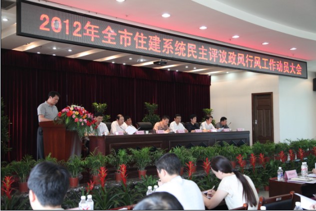 5月17日,市住建委召開全市住建系統(tǒng)民主評議政風(fēng)行風(fēng)工作動員大會,市住建委黨委書記、主任楊劍作動員報告,并出臺評議方案。圖為市供水總公司總經(jīng)理陳衛(wèi)國作表態(tài)發(fā)言。