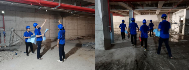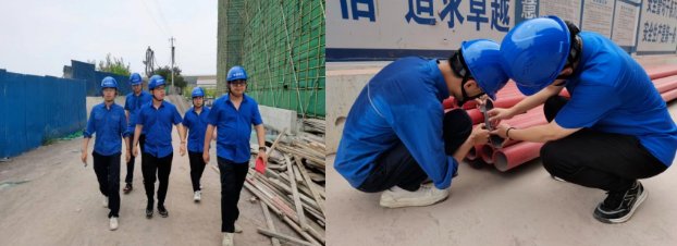 (左圖為每天早晨工地例行檢查 右圖為現(xiàn)場檢查消防管道壁)