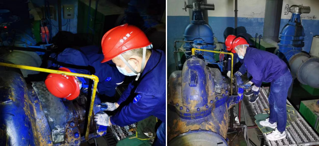 疫情期間,交通管制,運(yùn)輸材料十分困難。為保證特殊時(shí)期水質(zhì)達(dá)標(biāo),三水廠值班人員冒雨,徒手將20噸凈化劑搬運(yùn)至加礬車間。針對(duì)廠內(nèi)切換濾池與沉淀池管道的閥門運(yùn)行不暢現(xiàn)象,三水廠支部研究決定,更換閥門。由于使用年限較長,螺桿、螺帽已經(jīng)全部銹死,空間狹小,拆卸極為困難,但在崗?fù)聜儓F(tuán)結(jié)一心,迎難而上,僅用1個(gè)多小時(shí)就完成了原本需要5小時(shí)的工作量,圓滿完成任務(wù)。