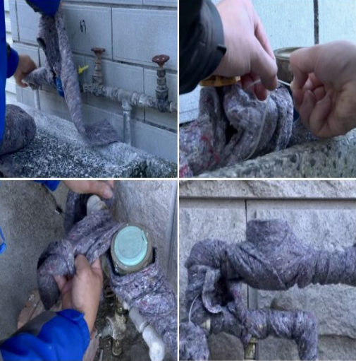 集團(tuán)及時(shí)更新匯總表務(wù)相關(guān)信息,安排專(zhuān)人對(duì)容易上凍或保溫材料缺失的裸露管道、高層小區(qū)管道井上下隔層空隙處加塞保溫棉,防止因樓層串風(fēng)或漏水造成冰凍的損失。同時(shí),我們?cè)跇堑来皯?、消防門(mén)等設(shè)施處張貼“隨手關(guān)閉”提示語(yǔ),提醒用戶養(yǎng)成隨手關(guān)門(mén)窗的習(xí)慣,進(jìn)一步預(yù)防冰凍情況發(fā)生。