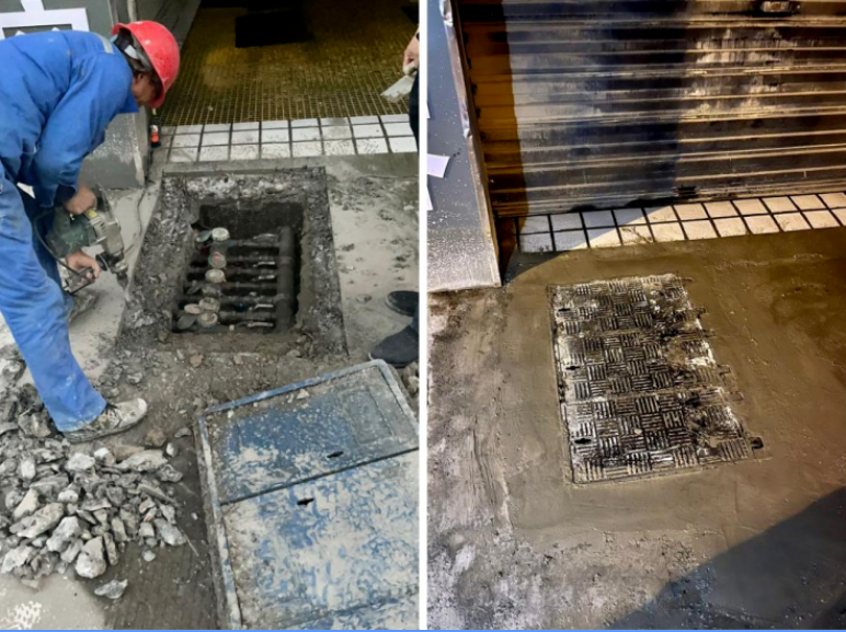 李先生是小區(qū)業(yè)主,見洗車店里每天進出車輛較多,導致門口的地埋式水表箱產(chǎn)生形變,且有積水,存在一定的安全隱患。3月4日上午,在接到李先生的求助后,水務(wù)集團第一時間派專人上門勘察,發(fā)現(xiàn)門面附近有天然氣管道標識地磚,但沒有管道走向標識地牌,貿(mào)然操作可能引發(fā)安全事故。經(jīng)溝通,工作人員擬將原水表箱更換為鑄鐵式水表箱,并幫其清除積水。為保障洗車店正常經(jīng)營,集團于5號晚上完成施工整改。李先生感慨集團反映迅速、整改及時、技術(shù)過硬。
