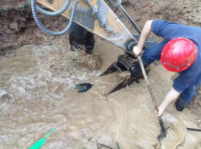 經(jīng)初步判斷,原因是地基沉降不均勻?qū)е鹿艿缿?yīng)力過(guò)大。因化工廠內(nèi)地下管線復(fù)雜,荊襄公司結(jié)合實(shí)際迅速制定搶修方案,通過(guò)機(jī)械和人工配合作業(yè)。開(kāi)挖過(guò)程中,管道中余水不停滲到基坑,需要不間歇抽水、排水。雖然氣溫已近冰點(diǎn),維修人員沒(méi)有絲毫退縮,在齊膝的積水中奮戰(zhàn)兩個(gè)多小時(shí),完成路基開(kāi)挖。