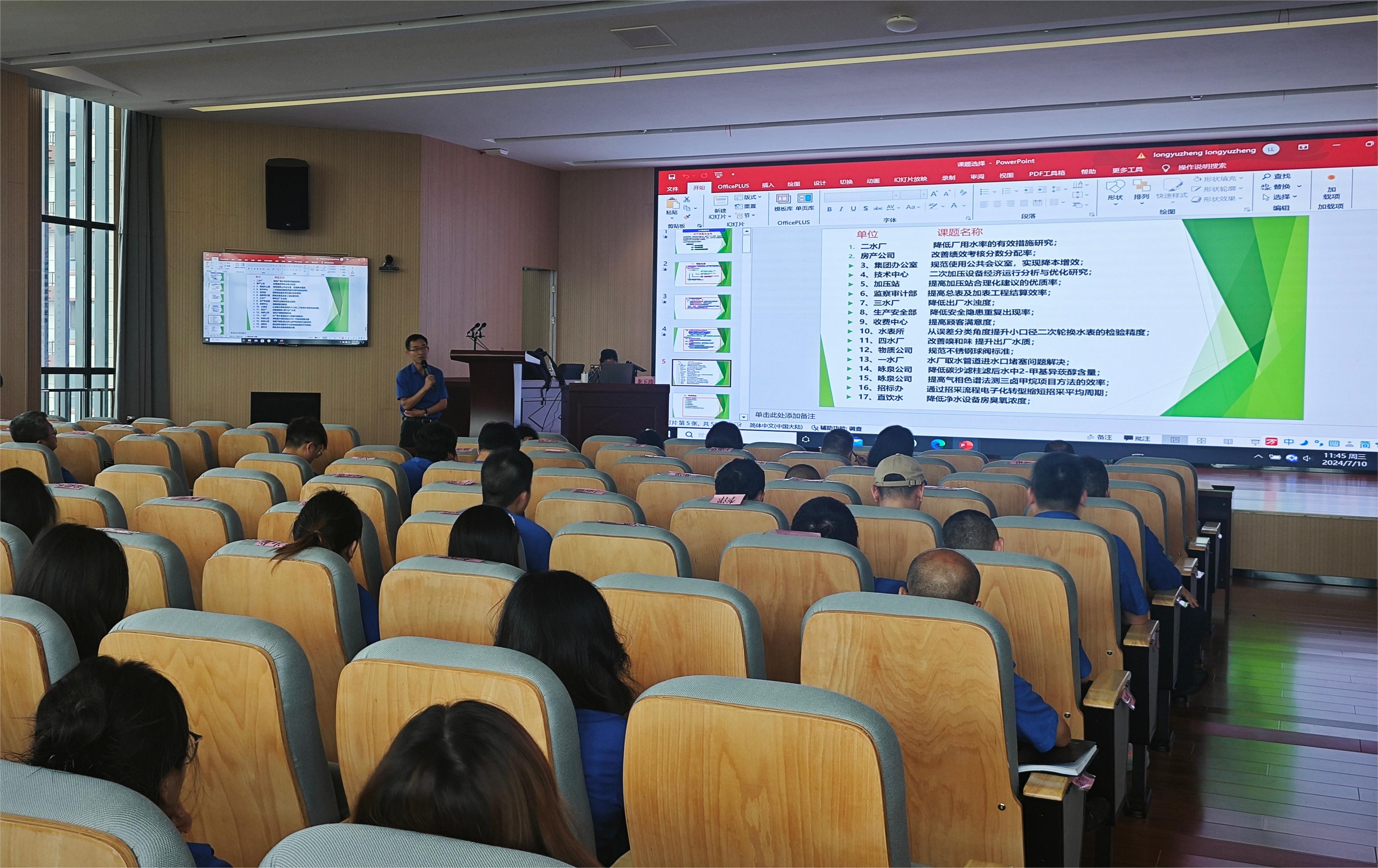 為響應國企改革提升行動相關(guān)要求,全面深入推進創(chuàng)新工作,提高組織績效,市水務(wù)集團于7月10日組織開展QC小組活動現(xiàn)場輔導,近百名干部職工參與培訓,集團黨委委員、副總經(jīng)理彭勇、總工程師劉昕平出席。