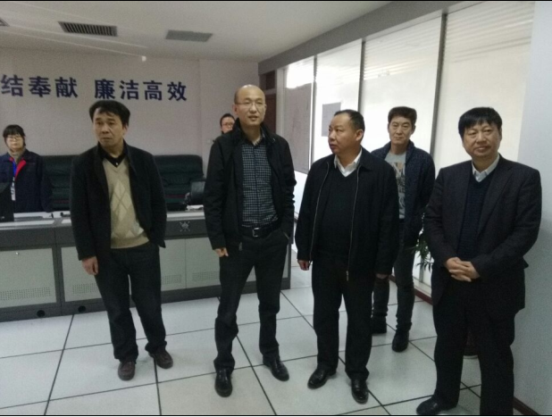 4月14日,省文明辦主任胡和平(前排右二)在市委常委、市委秘書長周友坤(右一)、市委宣傳部副部長、文明辦主任樊雁陪同下到公司指導創(chuàng)建全國文明單位工作,市供水總公司黨委書記、總經(jīng)理陳永根介紹相關情況。圖為在調度監(jiān)控中心視察時的情景。