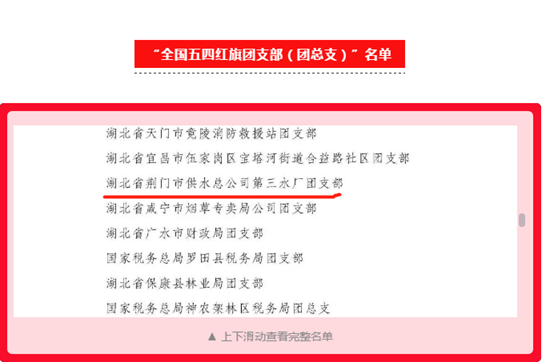 近日,共青團中央公布《關(guān)于表彰“全國優(yōu)秀共青團員”“全國優(yōu)秀共青團干部”“全國五四紅旗團委(團支部)”的決定》,市供水總公司三水廠團支部作為我市唯一團支部,喜獲“全國五四紅旗團支部”殊榮。全國五四紅旗團組織稱號是共青團中央授予基層團組織的最高榮譽,也是公司團支部首獲這一榮譽。